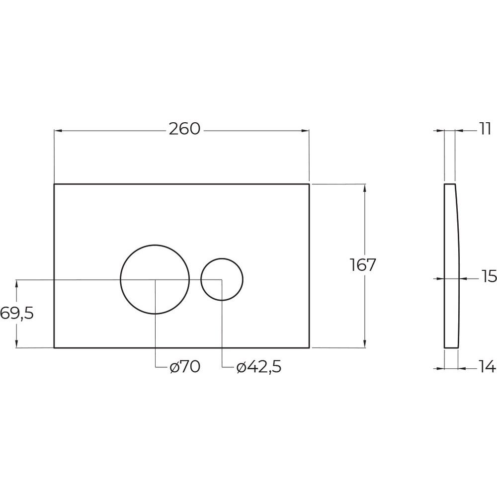 Кнопка смыва выполнена из прочного пластика и предназначена для использования с унитазами. Габариты изделия составляют 26 см в ширину и 16.7 см в высоту с глубиной 1.1 см, что делает её идеальной для установки в стандартные системы инсталляций. Она имеет две кнопки, которые обеспечивают выбор между полным и экономичным сливом. Гарантия на продукт составляет один год.