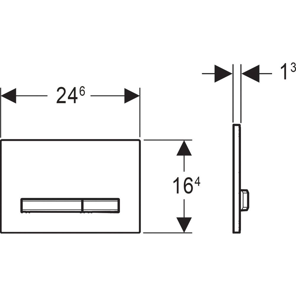 Кнопка смыва Geberit Sigma 50 имеет компактные габариты: ширина 24.6 см, высота 16.4 см и глубина всего 1.3 см. Она изготовлена из прочного пластика и металла, что обеспечивает надежность и стойкость к ежедневному использованию. Этот продукт предназначен для установки с унитазами и предлагает два режима смыва для большей экономии воды.