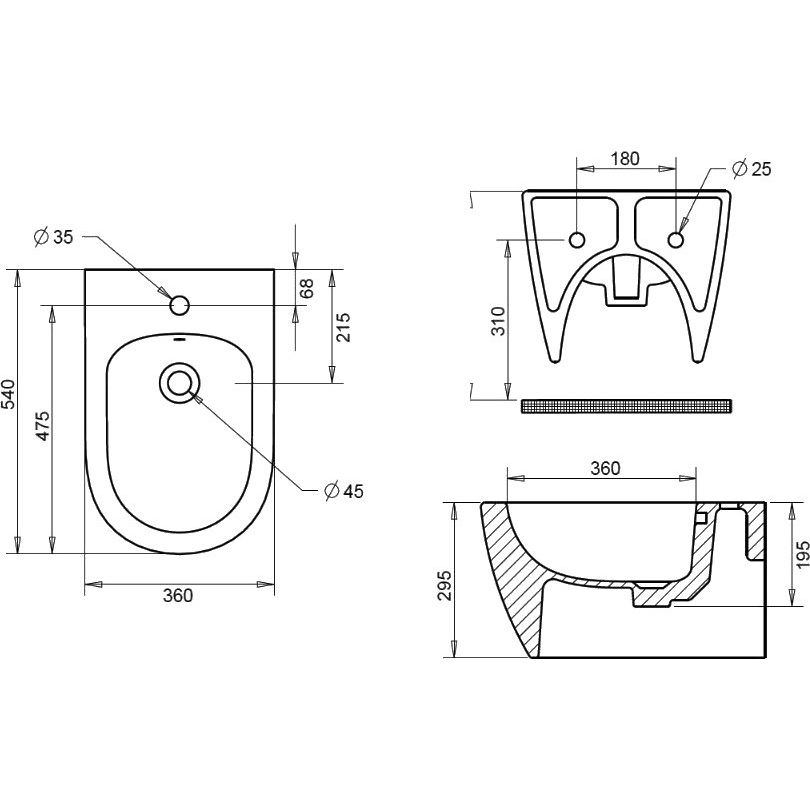 Компактные габариты 36x54 см делают этот комплект идеальным для помещений с ограниченным пространством. Подвесная конструкция выполнена из высококачественного фаянса с прочным сливом-переливом в комплекте, что добавляет дополнительный уровень безопасности от переполнения чаши. Диаметр слива составляет 4.5 см, а донный клапан приобретается отдельно.