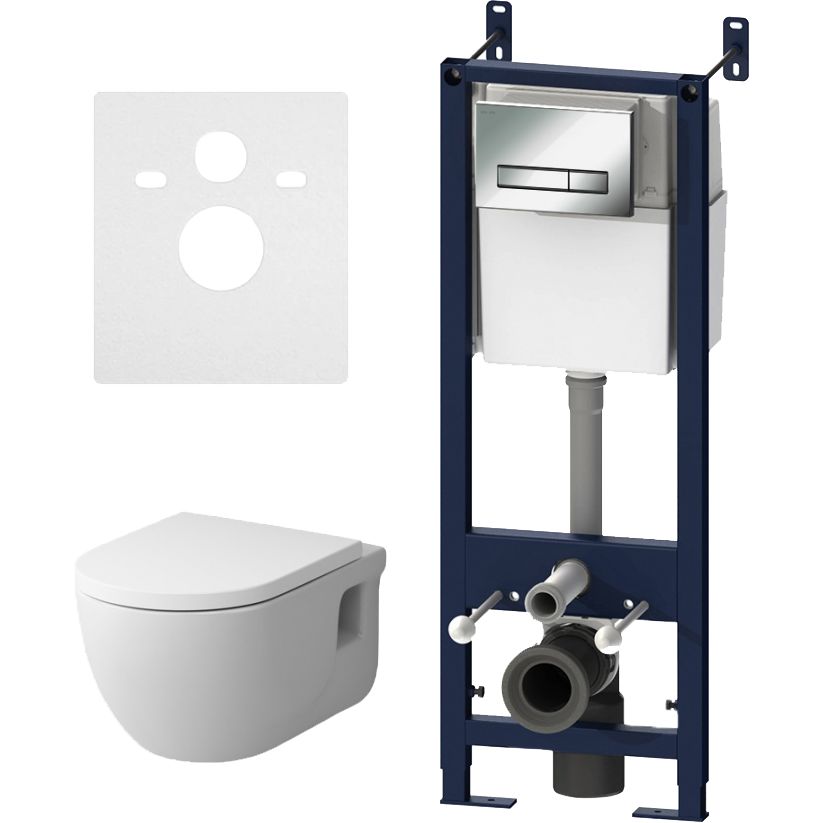 Комплект включает фаянсовый унитаз с горизонтальным выпуском в стену, обеспечивая эстетичность и удобство установки. Внутренняя форма воронки предотвращает образование брызг и обеспечивает чистоту в процессе эксплуатации. Универсальная высота чаши в 33.9 см и межосевое расстояние под крепёж шпильки 18 см, обеспечивают совместимость с большинством инсталляций. Сиденье выполнено из дюропласта и оснащено механизмом быстрого снятия для упрощения ухода. Объем слива регулируется на 3 и 6 литров, обеспечивая экономию воды. Гарантия на различную часть комплекта варьируется от 2 до 25 лет, учитывая надежность каждого элемента.
