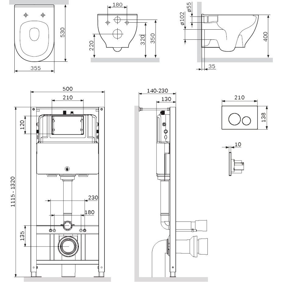 Комплект AM.PM Like включает инсталляцию с горизонтальным выпуском, что обеспечивает компактный монтаж в стену. Оснащение каскадным сливом обеспечивает мощное очищение чаши, а воронкообразная форма унитаза предотвращает образование брызг. Длина чаши составляет 45 см, а высота 35 см, что оптимально для комфортного использования. Межосевое расстояние под монтажные шпильки — 18 см, а подвод воды осуществляется сзади. В комплекте поставляется сиденье из сиденья дюропластом для повышенной износостойкости. Объем смыва регулируется от 3 до 6 литров.