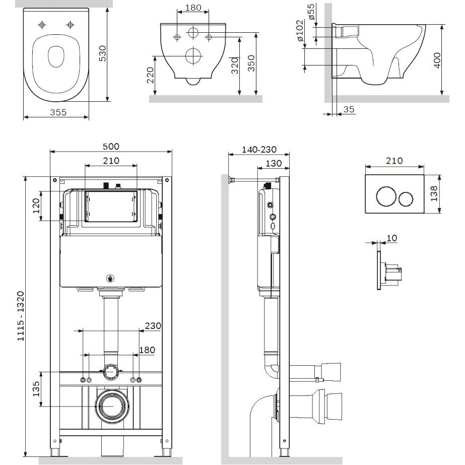 Унитаз имеет горизонтальный выпуск в стену, а благодаря воронкообразной форме предотвращает образование брызг. Каскадный слив обеспечивает мощный поток воды для идеальной чистоты чаши, длиной 45 см и высотой 35 см. Межосевое расстояние под крепежные шпильки составляет 18 см. Объем смыва предлагается на выбор: 3 или 6 литров. Подвод воды осуществляется сзади. Комплект включает звукоизолирующую прокладку, кнопку смыва и смывной бачок. Гарантия на керамику унитаза составляет 25 лет, на инсталляцию — 10 лет, на сиденье — 2 года, и на кнопку смыва — 2 года.