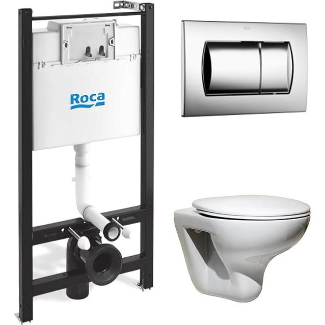 Комплект Roca Mateo 893100010 – это современное и стильное решение для обустройства ванной комнаты. Он включает в себя все необходимые компоненты для установки подвесного унитаза – от прочной инсталляции до изящной кнопки смыва. Усиленная стальная рама, покрытая защитным порошковым напылением, гарантирует долговечность и надежность конструкции, поддерживая нагрузку до 400 кг. Специально встраиваемый бачок оснащен шумоизоляцией и защищён от конденсата, а смывное устройство позволяет выбрать между стандартным и экономичным расходом воды. Унитаз изготовлен из фаянса с глазурованным покрытием, сохраняющим безупречную белизну. Сиденье из дюропласта дополняется механизмом плавного опускания, обеспечивая максимальный комфорт.