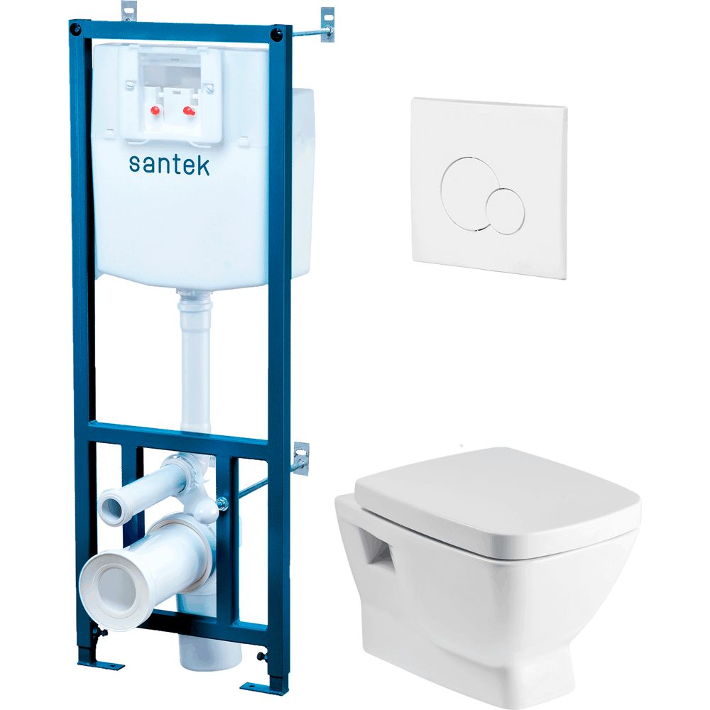 Комплект Santek Нео 1WH302463 с белой кнопкой — это идеальное решение для тех, кто стремится к удобству и функциональности в оформлении туалетной комнаты. Этот комплект, интегрированный по системе инсталляции, предлагает не только основу безопасности и долговечности, но и стильный дизайн, который отлично дополнит интерьер вашей ванной. Благодаря механизму экономного слива, вы сможете выбрать один из двух режимов — полный или частичный, что обеспечивает экономию воды без потери эффективности смыва. Горизонтальный выпуск в стену и плавное опускание крышки делают этот комплект необыкновенно удобным в эксплуатации.