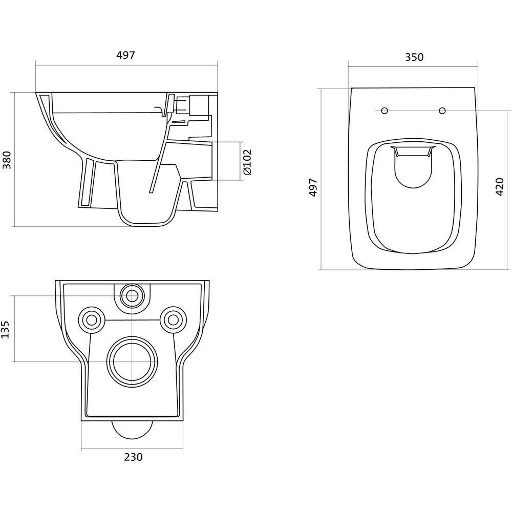 Комплект включает в себя унитаз с горизонтальным выпуском в стену и каскадным сливом, предотвращающим образование загрязнений благодаря мощному сплошному потоку воды. Длиной 42 см и высотой чаши 38 см, он имеет фарфоровую поверхность и поставляется вместе с удобным дюропластовым сиденьем. Важная особенность - съемная крышка-сиденье, упрощающая уход за изделием. В зависимости от потребности возможен выбор объема смыва - 3 или 6 литров, что особенно важно для экономии ресурсов.