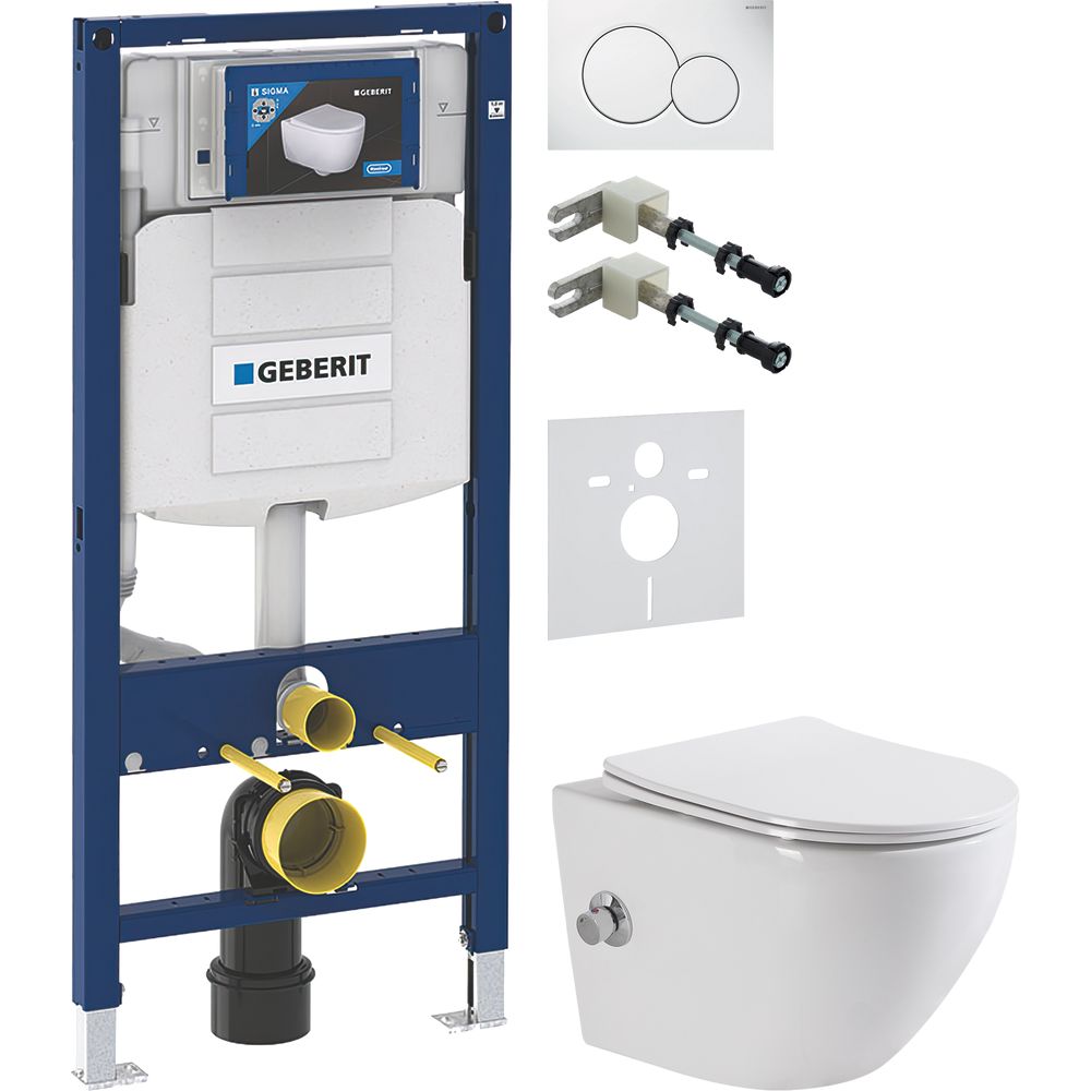 Комплект для ванной комнаты от Geberit и BelBagno — это новое слово в комфорте и функциональности. Подвесной унитаз BelBagno Uno не только украсит вашу ванную комнату своим стильным дизайном, но и обеспечит непревзойденный комфорт благодаря функции биде и плавному механизму закрытия крышки. В комплект входят элементы, которые облегчают установку и эксплуатацию, включая инсталляцию Geberit Duofix и кнопку смыва Geberit Sigma. Каждая деталь продумана до мелочей, чтобы вы наслаждались пользованием ежедневно, а заботы по уборке свелись к минимуму благодаря безободковой конструкции.