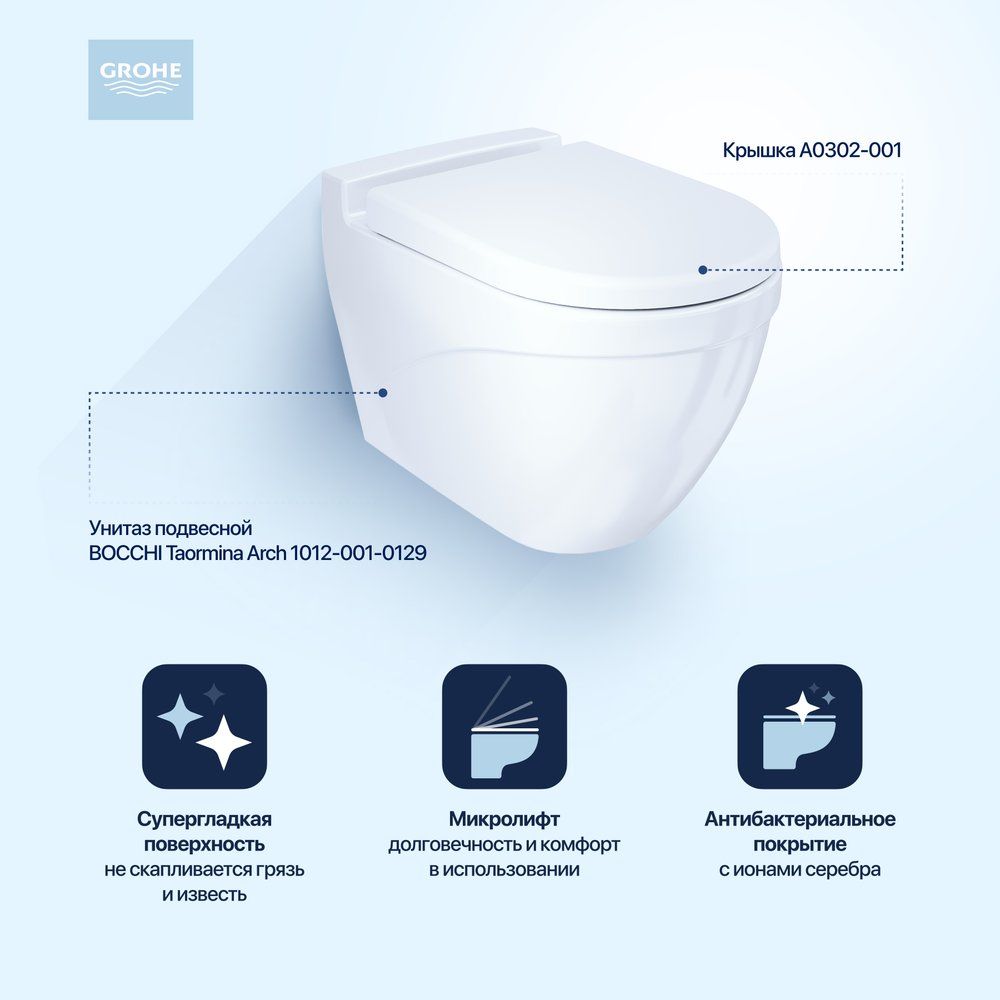 Ищете идеальное решение для современной ванной комнаты? Комплект, состоящий из подвесного унитаза BOCCHI Taormina Arch и инсталляции Grohe Rapid SL, создан для тех, кто ценит стиль, комфорт и высокие технологии. Уникальная покрытие чаши препятствует образованию загрязнений и сохраняет гигиеническую чистоту надолго. А крышка с микролифтом делает использование максимально комфортным и безопасным. Инсталляция от Grohe обеспечивает тишину и надежность даже в самых активных домах, благодаря экономичному и бесшумному смывному механизму GROHE EcoJoy.