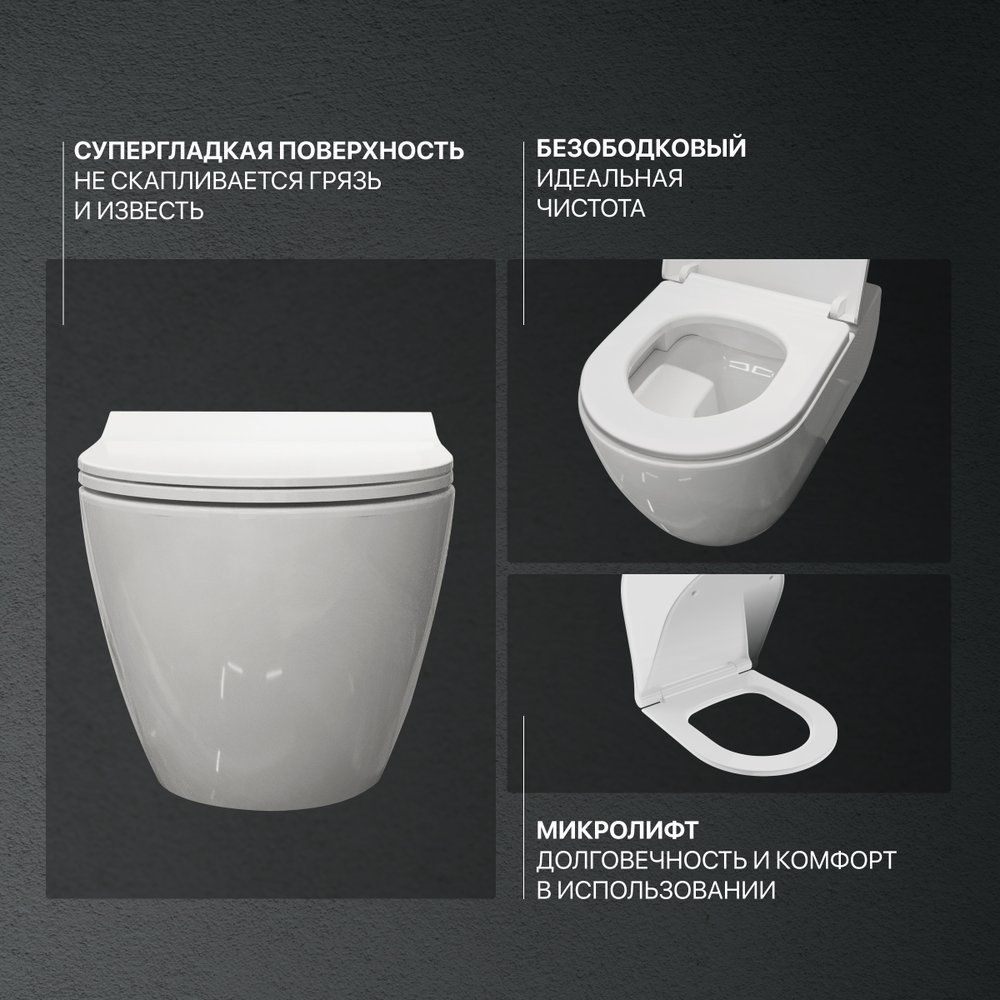 - Сиденье с микролифтом и быстросъемной конструкцией крышки упрощают уход и добавляют комфорта.