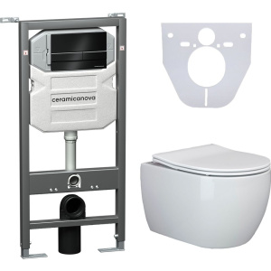Комплект Ceramicanova Play — это стильное и функциональное решение для современной ванной комнаты, идеально объединяющее эстетику и удобство. Этот комплект включает безободковый подвесной унитаз Ceramicanova Play CN3001, оснащенный микролифтом для плавного опускания крышки, а также инсталляцию Envision CN1002B и черную матовую кнопку Flat. Экономный слив с двумя кнопками позволит вам выбрать между полным и частичным объемом слива, обеспечивая оптимальное использование воды.