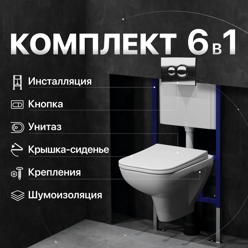 Система инсталляции крепится в капитальную стену и пол, поддерживает экономный слив с двумя кнопками на 3 и 6 литров. Оснащена звукоизолирующей прокладкой, защищена от коррозии и конденсата, и рассчитана на более 200 000 циклов использования.