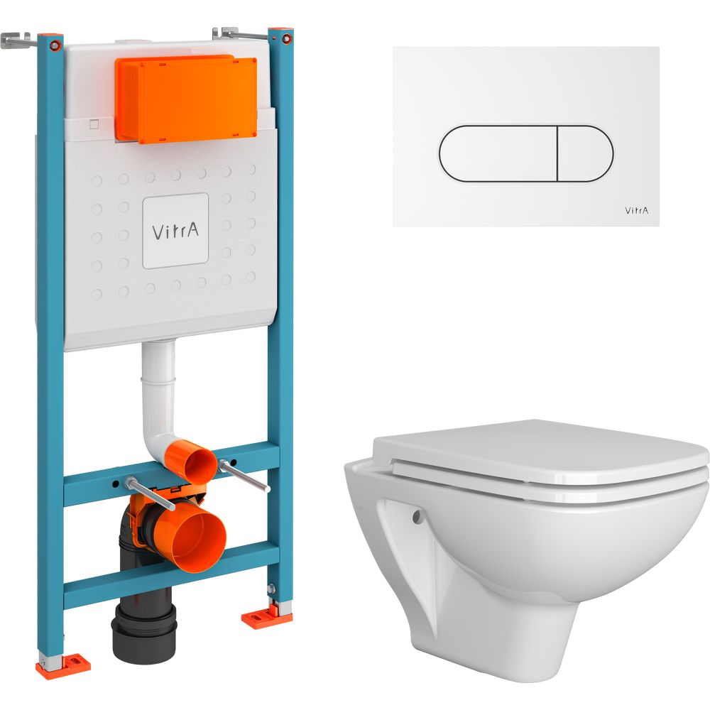 Инсталляционная система VitrA V-Fix Core предлагает двойной режим слива (3 и 6 литров) и удобное крепление, обеспечивающее безопасность и устойчивость конструкции. Эта система адаптирована для монтажа в капитальную стену, с монтажной глубиной всего 8 см. Белая глянцевая кнопка смыва Root Round придаст ультрасовременный акцент вашей ванной.