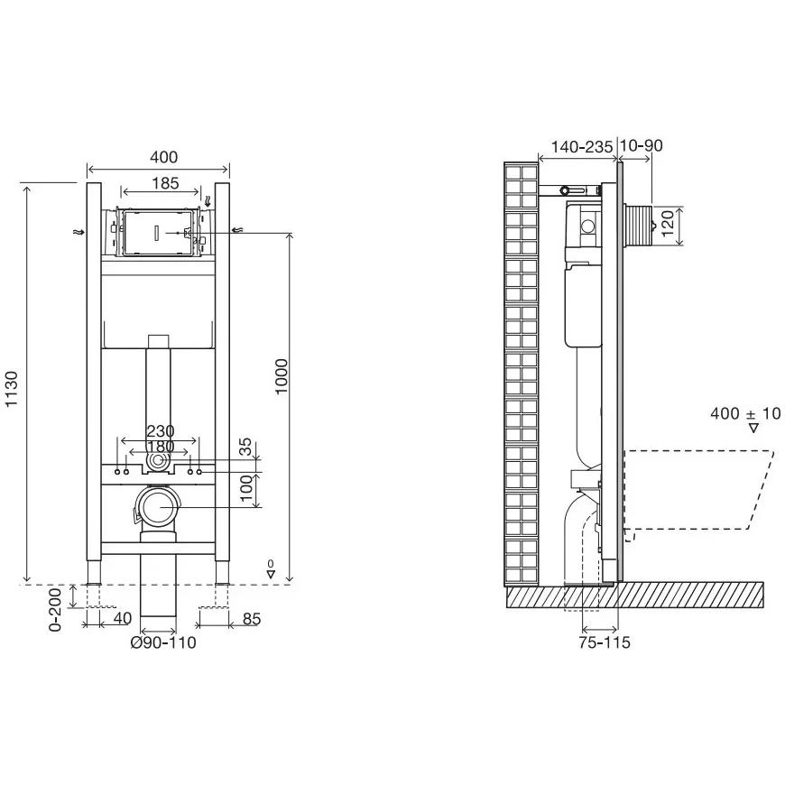 Размеры ВхШ, мм: 1000-1130х400