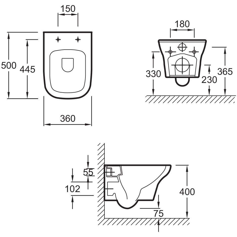 - Безободковая конструкция Rimless: высочайший уровень гигиены.