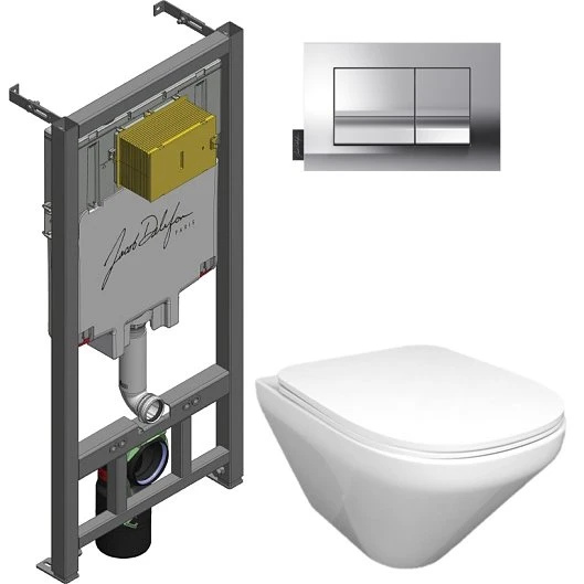 Система инсталляции от французского производителя Jacob Delafon – тщательно продуманная конструкция, при помощи которой можно надежно закрепить сантехническое оборудование и спрятать коммуникации. Металлическая рама проста в установке и выдерживает до 400 кг нагрузки. Конструкция оснащена термостойким бачком, отличающимся повышенной прочностью и защищенным от конденсата специальным кожухом. Смыв осуществляется при нажатии на механические кнопки на панели управления. Благодаря подвесному монтажу можно функционально использовать все свободное пространство санузла, а убираться в помещении станет гораздо удобнее.