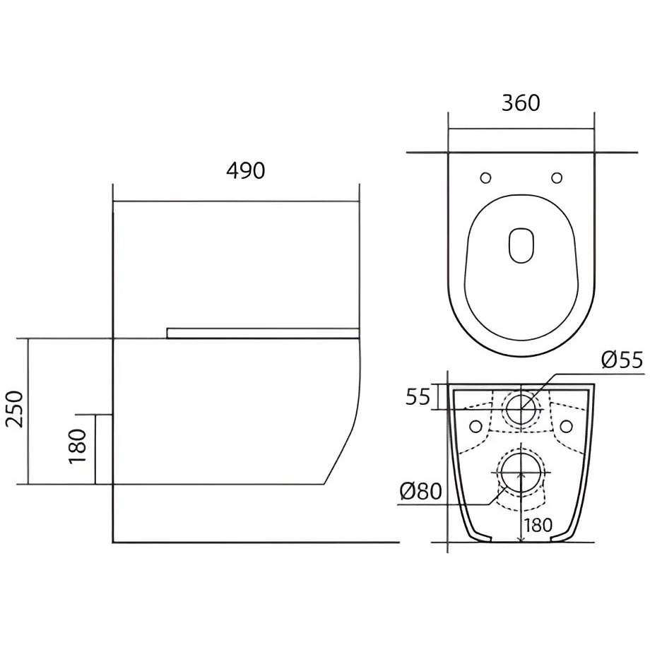 - Чаша унитаза безободковая 490x360x250 мм