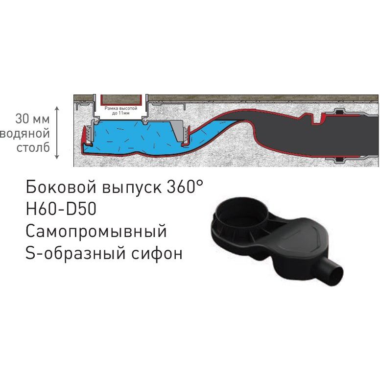 - Наличие гидрозатвора обеспечивает защиту от неприятных запахов из канализации.