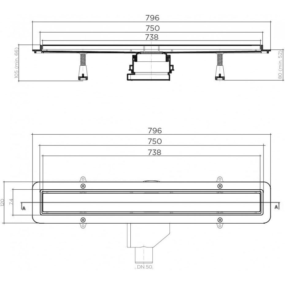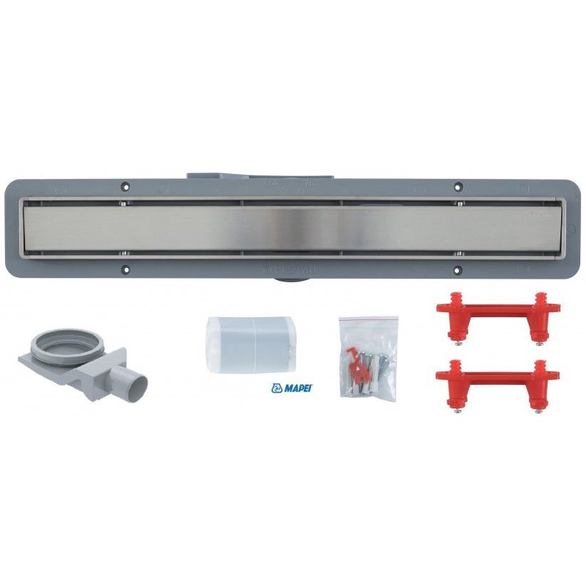 Внешние размеры душевого трапа составляют 73,8 см в длину и 7,4 см в ширину, что позволяет органично вписаться в пространство любой ванной комнаты. Устройство рассчитано на монтаж с боковым выпуском и может подключаться к канализационной трубе диаметром 5 см. Регулировка по высоте возможна в пределах 4.6 см, что позволяет внедрить лоток даже в условиях ограниченного пространства. Общая высота монтажа не превышает 7.1 см. В комплект входит гидроизолирующая прокладка и уплотнительная манжета для надежной герметизации, а также грязеуловитель, упрощающий уход за канализационной системой.