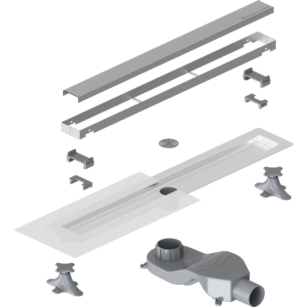 При установке учитывайте, что монтаж душевого трапа требует жидкого типа изоляции поверхности. Обратите внимание, что изделие предполагает общую высоту монтажа в 1.6 см. Продукт комплектуется сифоном, и не требует дополнительных покупок для его установки.