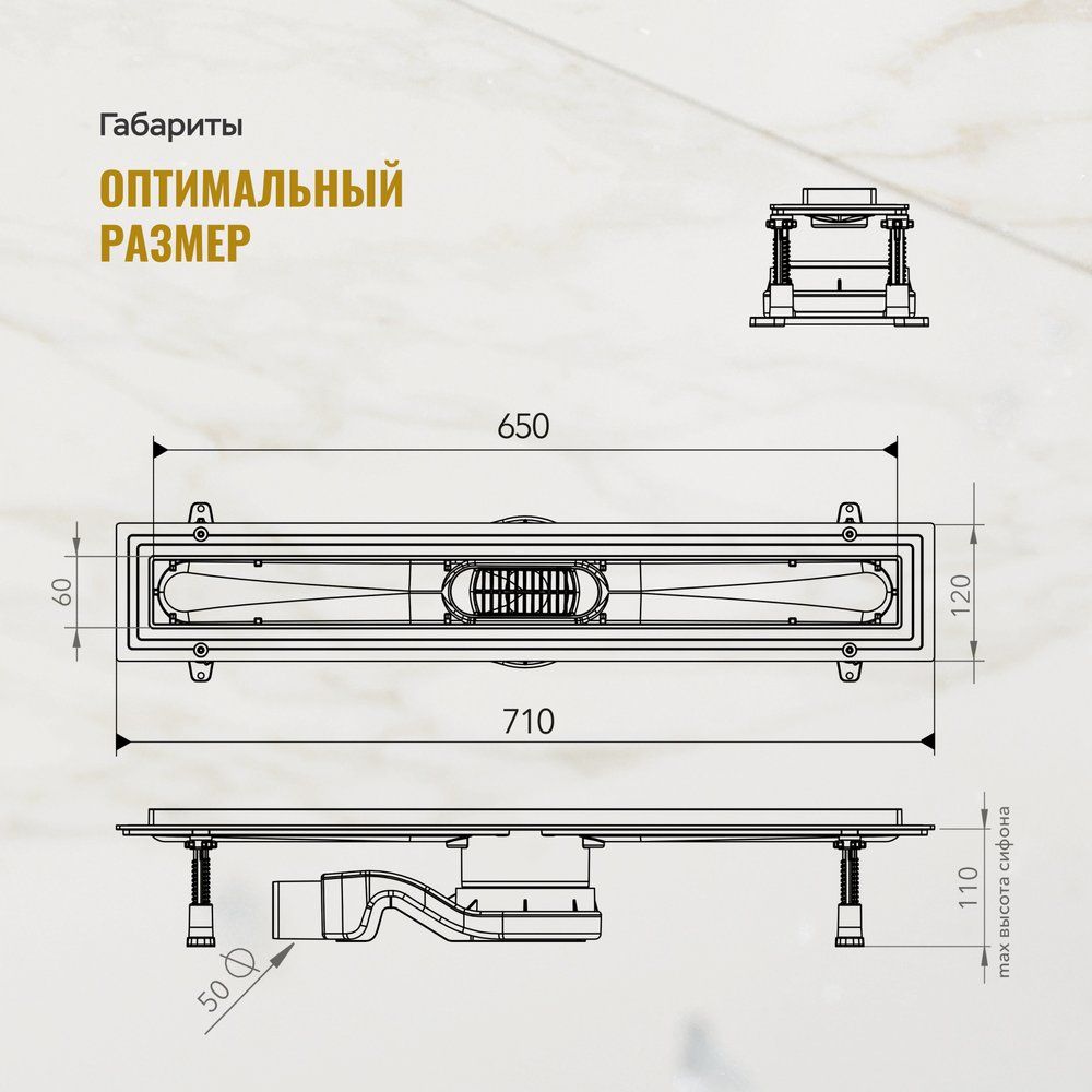 При установке учитывайте возможность использования решетки для укладки плитки – трап предоставляет два дизайнерских решения в одной модели: декоративная решетка или плиточное основание. Обратите внимание, что сифон уже входит в комплект, что значительно упрощает процесс установки и покупку дополнительных комплектующих.