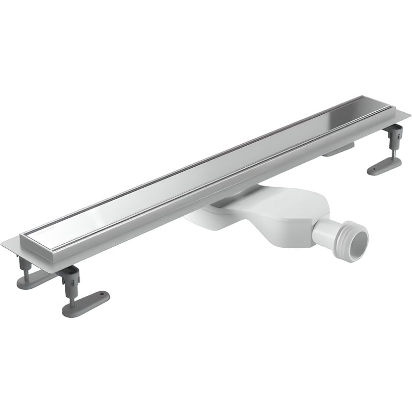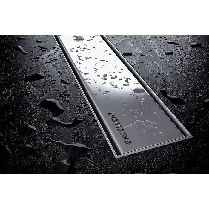 Душевой трап Excellent Stilio имеет внешние размеры 90x7,2 см, что позволяет разместить его вровень с полом для максимально эстетичного вида. Он оснащён боковым выпуском и мокрым затвором, который предотвращает распространение запахов из канализации. Решетка с щелью для воды выполнена из нержавеющей стали, что гарантирует её долговечность и устойчивость к коррозии.