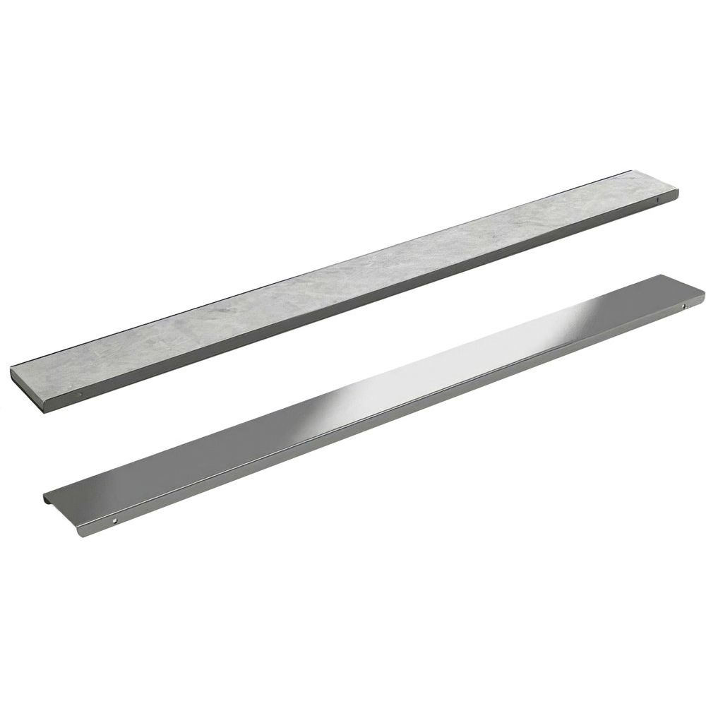 Душевой лоток имеет размеры 75x5,8 см и монтируется непосредственно в пол, что позволяет разместить его вровень с плиткой, создавая ровную поверхность. Боковой выпуск воды с диаметром слива 5 см легко подсоединяется к канализационной трубе. Комплект включает в себя сифон, опоры и гидроизолирующую прокладку.