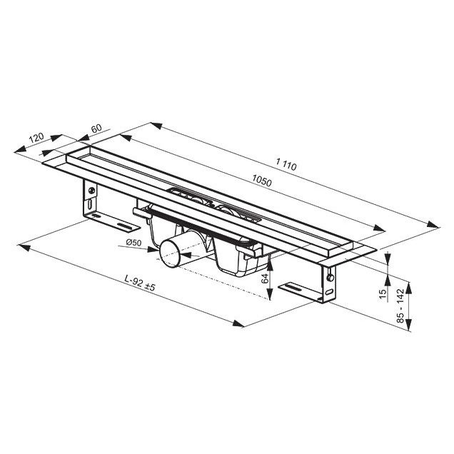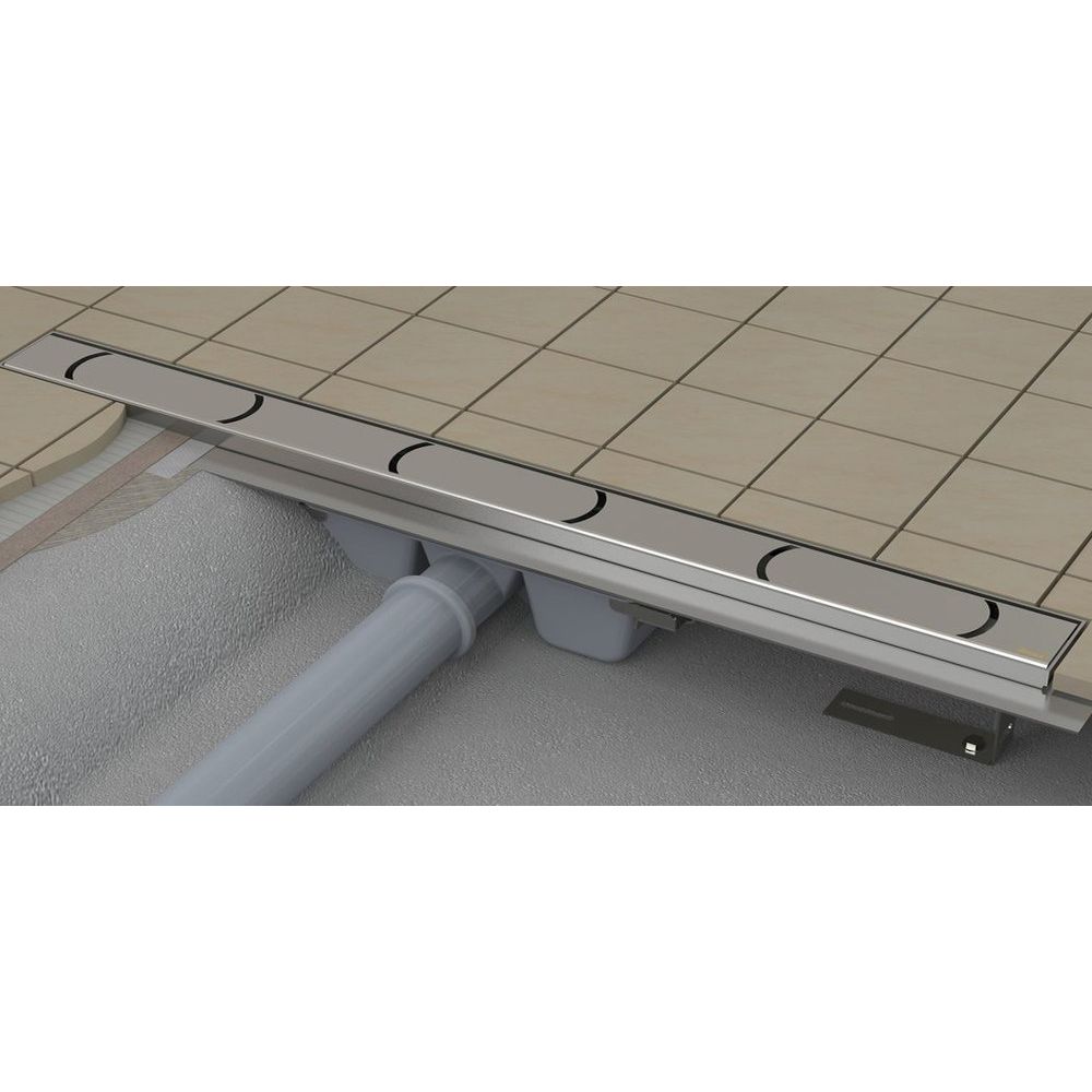 Душевой трап Ravak Chrome 1050 имеет габариты внешней части длиной 105 см и шириной 6 см. Он установлен в пол и размещается вровень с ним, что создает элегантный и современный вид. Боковой выпуск обеспечивает эффективное подключение к канализационной системе, учитывая диаметр слива и подключения в 5 см. Система оснащена мокрым затвором, предотвращающим проникновение запахов, а также перфорированной решеткой из нержавеющей стали. Возможна регулировка по высоте с диапазоном 5.7 см, при общей высоте монтажа в 15.7 см. Благодаря антигрязевому покрытию на решетке, частицы не задерживаются, что препятствует образованию засоров и отложений.