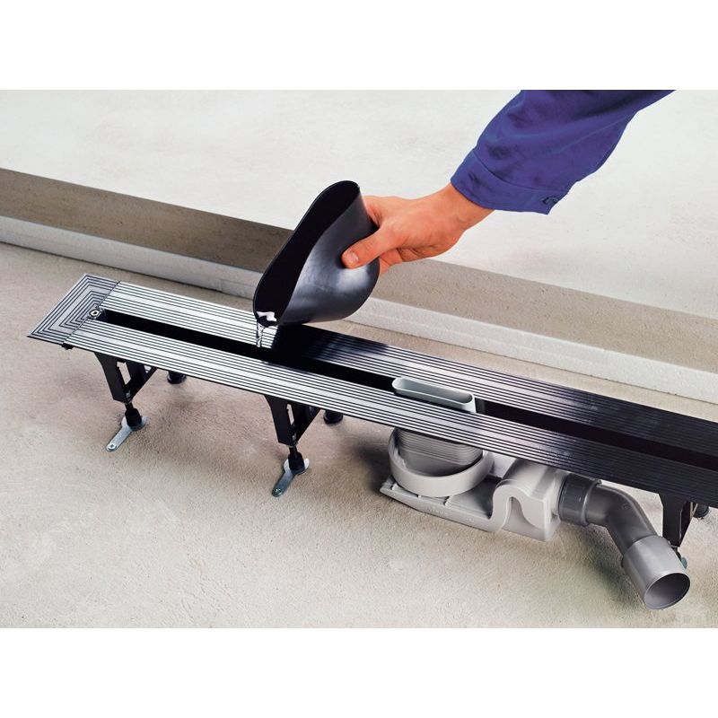 Душевой лоток обладает габаритами 120x2 см и устанавливается вровень с полом, что обеспечивает эстетику и безопасность. Рассчитан на монтаж в пол с выпуском, имеющим уклон. Оснащен мокрым затвором, который предотвращает распространение запахов благодаря воде в сифоне. Решетка изготовлена из нержавеющей стали с щелевым дизайном для эффективного водоотведения и имеет регулировку по высоте в размере 7 см. Диаметр слива составляет 10 см, а подключение к канализационной трубе — 5 см. С максимальной пропускной способностью в 48 л/мин и минимальной в 24 л/мин, трап легко справляется с отведением воды.