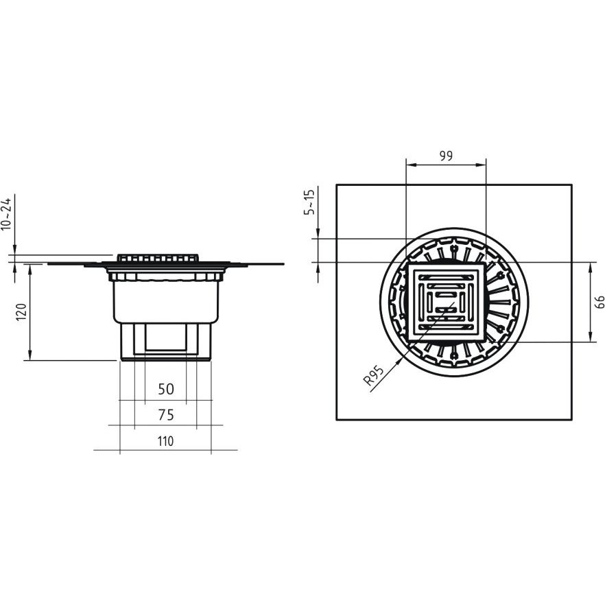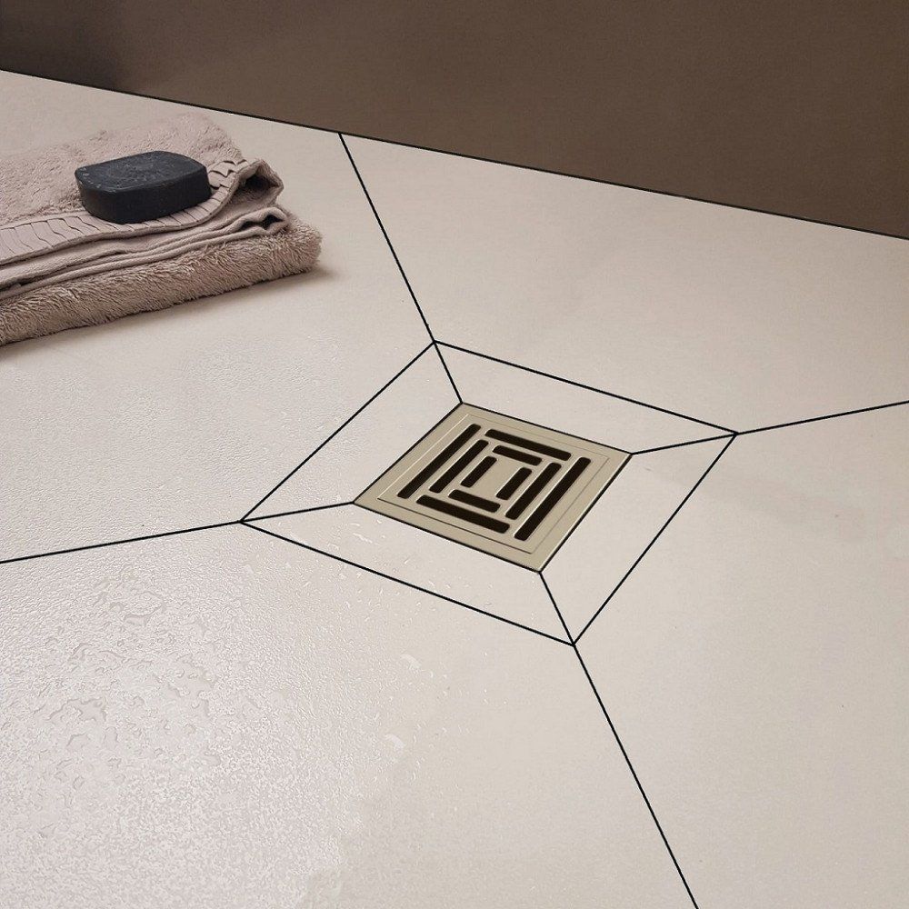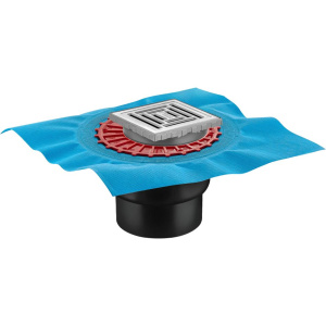 Душевой трап размером 10x10 см с перфорированной решеткой из нержавеющей стали, размещаемый вровень с полом, имеет прямой выпуск и комбинированный затвор. Его можно регулировать по высоте на 1.4 см, что делает данный трап подходящим для различных требований при монтаже. Установочный комплект включает сифон с гидроизоляцией, прокладку, фланец и дополнительную монтажную заглушку из полипропилена. Диаметр слива составляет 10 см, а подключение к канализационной трубе возможно диаметром 5 см.