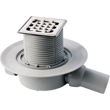 Внешняя часть душевого трапа Viega Advantix 583248 имеет размеры 10x10 см, что позволяет разместить его вровень с полом для более эстетичного внешнего вида. Боковой выпуск обеспечивает удобное подвключение к канализационной трубе диаметром 5 см, а сам диаметр слива составляет 10 см. Устройство оснащено перфорированной решеткой из нержавеющей стали, которая дополняется различных элементами, как компенсатор по высоте и шарнирный отвод. Регулировка по высоте достигает 7 см, что позволяет точно подогнать трап под уровень пола. В комплект входят сифон и защитная заглушка.