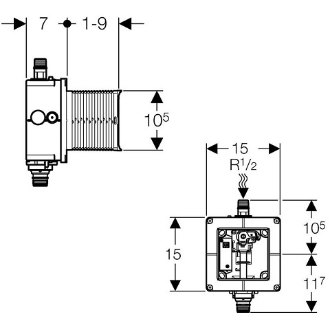 - Для крепления системы управления смывом HyTronic IR или пневматической системы управления смывом HyTouch с размером клавиши 13 x 13 см