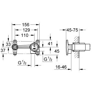 - Глубина монтажа: 45-75 мм, шаблон для монтажа