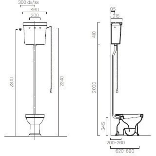 Бачок для унитаза GSI CLASSIC 878011. Размер - 46х41х21.5 см (подвешивается на высоту 234 см по верхнему краю). Цвет - белый. Подходит к унитазу GSI 871111. Система смыва (высокая труба кв комплекте) приобретается отдельно.