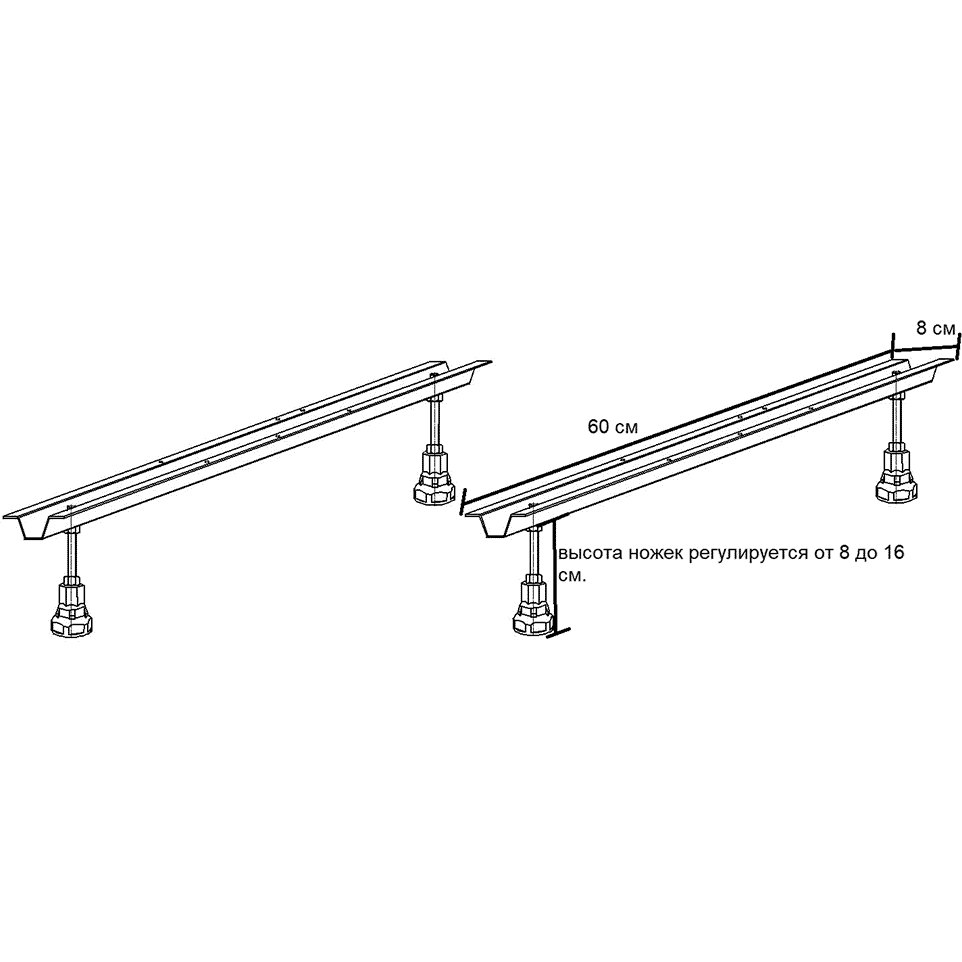 Ножки опоры регулируются по высоте в диапазоне 8-16 см, что позволяет устанавливать ванну на неровный пол.