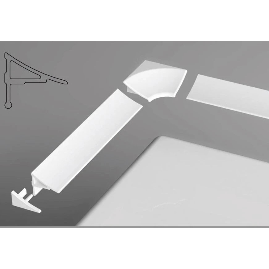 Декоративная планка служит для устранения зазора между стеной и поддоном. Максимально закрывает и герметизирует зазор, а уход за ней намного проще, чем чистка неравномерно нанесенного герметика, который, после налипания грязи может испортить общий вид интерьера.
