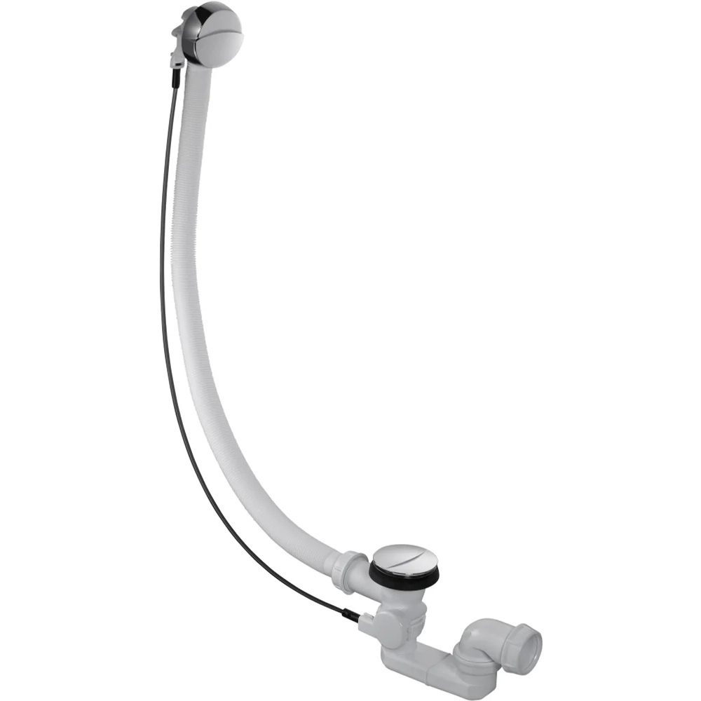 Слив-перелив для ванн французского производителя Jacob Delafon – это полуавтоматическая система, обеспечивающая спуск воды из ванной в канализацию и предохраняющая ее от переполнения. Система слива-перелива состоит из вентиля, донного клапана и тросика. Поворот вентиля обеспечивает закрытие и открытие донного клапана. Слив-перелив оснащен гидрозатвором – водяной пробкой, которая препятствует выходу неприятного запаха из канализации. На поверхности ванны остаются только вентиль и пробка, изготовленные из хромированной нержавеющей стали. Тросик и сифон располагаются под ванной. Длина сифона регулируется по высоте. При установке модели производитель рекомендует сохранять расстояние не менее 125 мм от пола до нижнего края ванны.