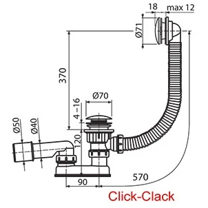 Закрытие слива сточного комплекта с механизмом Click-Clack осуществляется нажатием на крышку сливной пробки. При повторном нажатии слив открывается. Хромированная крышка пробки и корпус перелива изготовлены из нержавеющего металла.