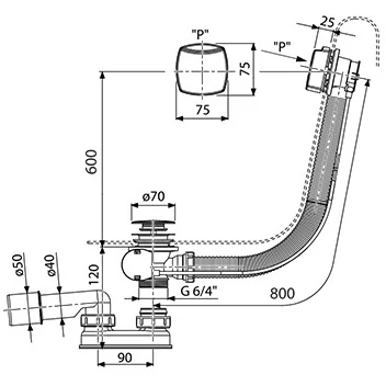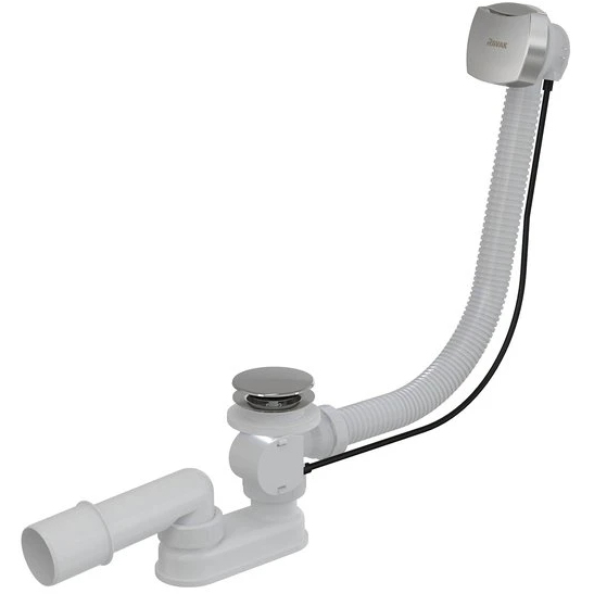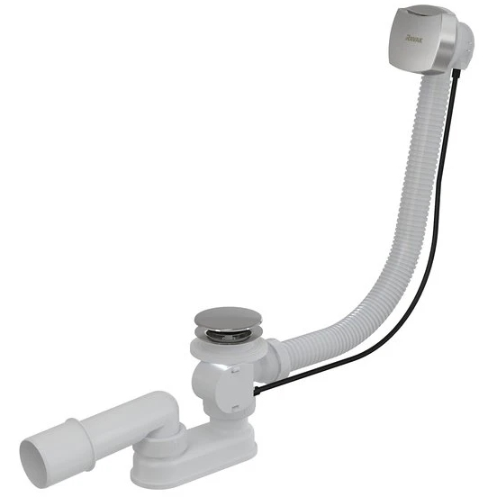 В сточных комплектах с управлением сливом крышка перелива (которая одновременно является ручкой управления) и сливная пробка соединены тросом. Повернув ручку управления можно закрыть или открыть сливную пробку. Хромированная крышка перелива квадратной формы. Металлическая крышка пробки слива также покрыта хромом.