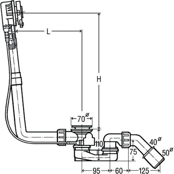 - Высота столба жидкости в гидрозатворе: 50 мм