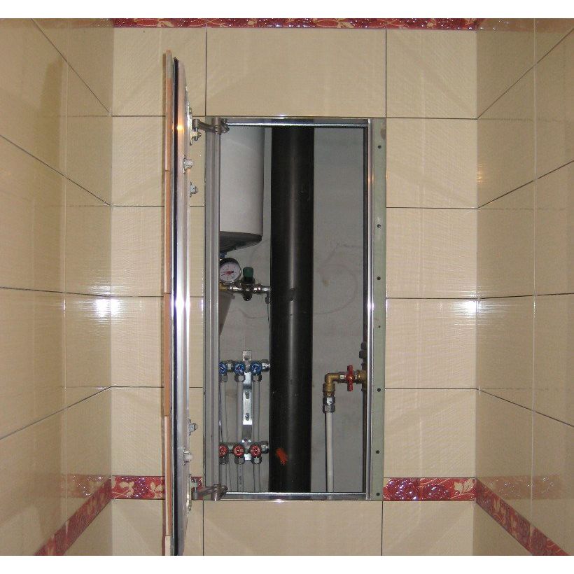 - Настенный люк под плитку, предназначен для установки в стены из кирпича, бетона, пенобетона или гипсокартона.