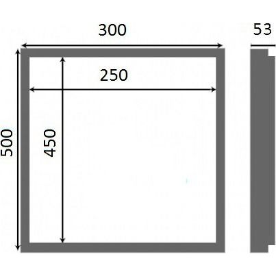 - Размер: монтажная глубина 5.3 см, монтажная ширина 30 см, монтажная высота 50 см.