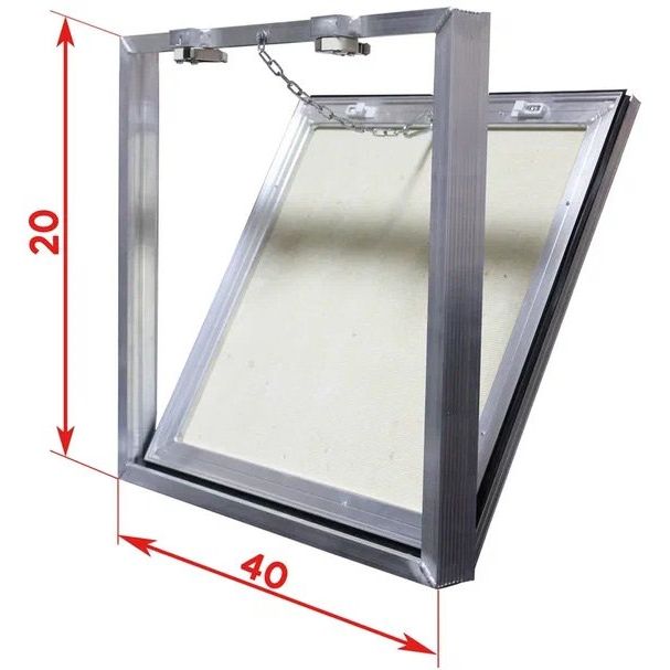 - Габариты: монтажная глубина составляет 4.2 см, ширина — 40 см, высота — 20 см. Размер ревизионного окна — 39.2 мм ширина и 19.2 мм высота.