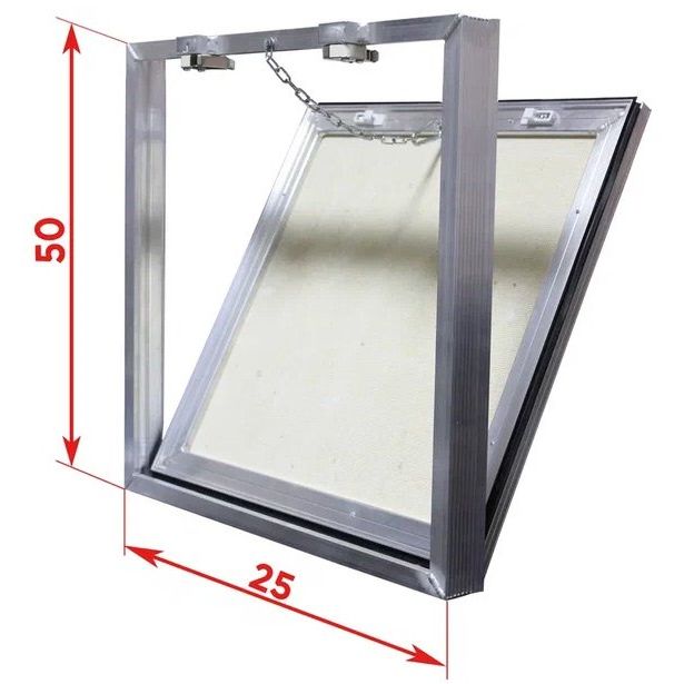 Этот ревизионный люк имеет компактные размеры: монтажная глубина составляет 4.2 см, а монтажные ширина и высота — 25 см и 50 см соответственно. Полезное ревизионное окно имеет размеры 24.2 мм в ширину и 49.2 мм в высоту, что обеспечивает удобный доступ при необходимости. Дверца люка заполнена влагостойким гипсоволокном и оснащена дополнительными элементами комфорта, такими как уплотнители и страховочные тросики. Люк легко устанавливается в стены из кирпича, бетона, пенобетона и гипсокартона, что делает его универсальным решением для любых помещений.