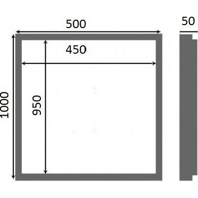 - Монтажные размеры: ширина 50 см, высота 100 см, глубина 5 см.