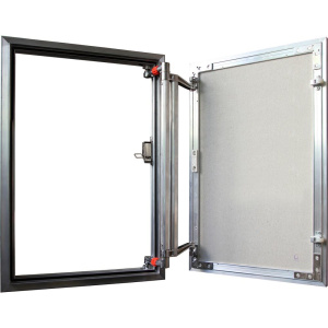 Настенный ревизионный люк «Евроформат АТР» от российской компании «Практика» представляет собой функциональную конструкцию, отличающуюся надежностью и простотой установки. Он идеально вписывается в интерьер — при декорировании плиткой не требуется подрезка и подгонка. Влагостойкая дверца из гипсоволокна крепится на прочном алюминиевом профиле с использованием хромированных консолей из силумина, что обеспечивает долговечность. Современный магнитный замок CombiTOUCH надежно удерживает дверцу закрытой, обеспечивая доступ к коммуникациям благодаря возможности раскрытия на 270°.