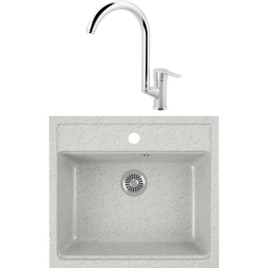 Комплект мойки кухонной Domaci Бьелла DMC-06 в сером исполнении в сочетании со смесителем MEGA Snow MG-SH03 в хроме не просто украсит вашу кухню, но и подарит небывалый комфорт в использовании. Выполненная из искусственного мрамора, мойка отличается высокой прочностью и стильным матовым финишем, а смеситель с глянцевым покрытием и технологией экономии воды подчеркнет изысканность вашего интерьера.