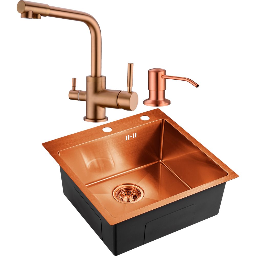 Комплект для кухни Domaci Равенна, выполненный в стильном медном цвете, представляет собой идеальное сочетание изысканного дизайна и функциональности. Включая кухонную мойку, смеситель и дозатор, этот набор гармонично впишется в любую современную кухню, придавая ей благородный вид и гарантируя комфорт в использовании. Высококачественные материалы обеспечивают долговечность и простоту ухода, что делает этот комплект незаменимым помощником на вашей кухне.