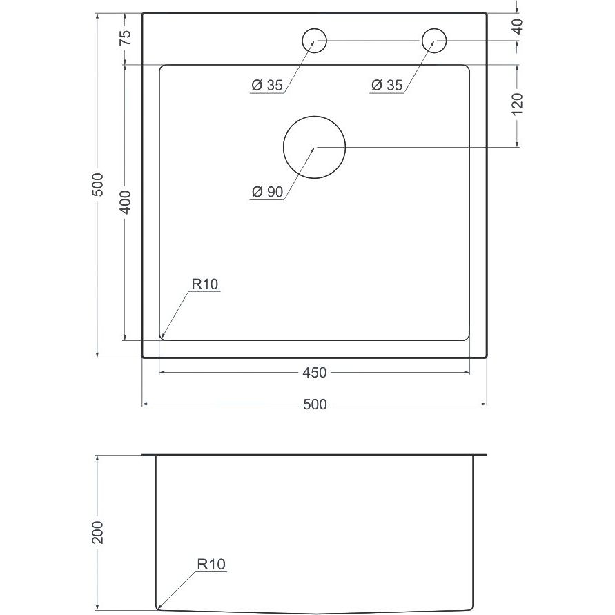 Мойка кухонная Domaci Равенна PVD DMB-117A: встраивается выше уровня столешницы и представляет габариты 50x50x20 см, с чашей 45x40 см. Изготовлена из нержавеющей стали с полированной поверхностью. Диаметр слива составляет 9 см, комплектуется сливной арматурой, сифоном и корзинчатым вентилем. Для удобства использования предусмотрены два готовых отверстия.