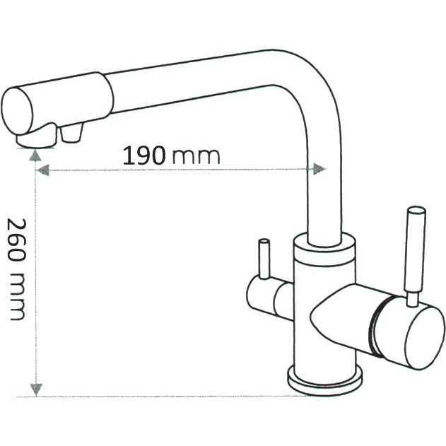 Смеситель Domaci Равенна DCB 3003N: изготовлен из латуни и включает совмещённый излив как для обычной, так и для фильтрованной воды. Высота излива 26 см, длина 19 см. Обладает непревзойденным PVD-покрытием, оснащен аэратором и гибкой подводкой.