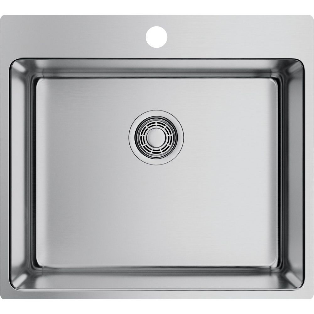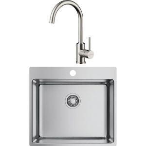 Кухонная мойка Omoikiri Amadare 55-IN представляет собой образец надежности с габаритами 55x50,5x20 см и чашей 50x40 см. Она изготовлена из брашированной нержавеющей стали и устанавливается выше уровня столешницы. В комплект входят слив-перелив, корзинчатый вентиль и готовое отверстие под смеситель, а также сливная арматура, сифон и уплотнительная прокладка. Гарантия на мойку — 15 лет.