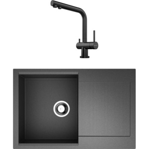 Комплект кухонной мойки Omoikiri Daisen 78-BL и смесителя Nagano PVD-GM — это гармоничное сочетание стильной эстетики и надежных технических характеристик, которое станет идеальным дополнением вашей кухни. Прямоугольная мойка вместительна и удобна, она выполнена из высококачественного искусственного гранита, что гарантирует долговечность и устойчивость к износу. Уникальное PVD-покрытие придает поверхности изысканный внешний вид, подчеркивающий современный стиль вашего интерьера. Резиновые накладки на дне мойки обеспечивают тихую работу даже в процессе интенсивного использования. Смеситель вороненой стали с латунным корпусом снабжен аэратором и дополнительным изливом, что позволяет легко переключаться между обычной и фильтрованной водой — это делает использование комплекта функциональным и крайне удобным.